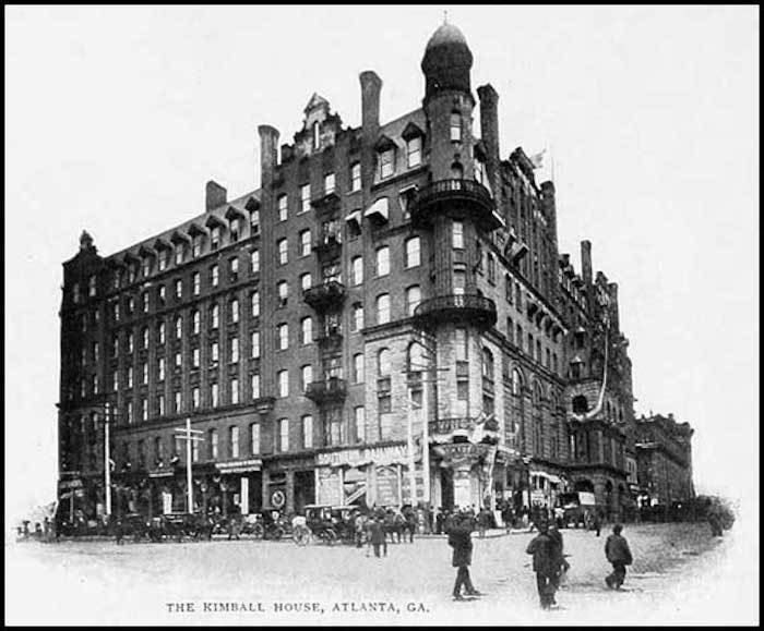 The restaurant is a representation of what used to be the “finest hotel in South,” a 500-room hotel that took up close to an entire block in Five Points. Built in 1870, the Kimball House Hotel burned down in 1883 and was rebuilt in 1885. The original hotel was the first in Atlanta to have elevators and central heating.