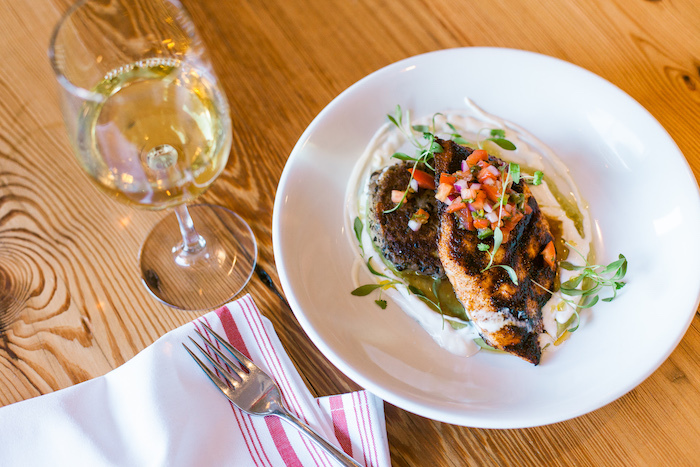 We opted to try the saffron-marinated shrimp grilled flatbread, the salmon served with a goat cheese and black bean cake and a sampling of four types of tacos. All the dishes were winners, although I was not man enough for the fried jalapeños on the chicken taco.