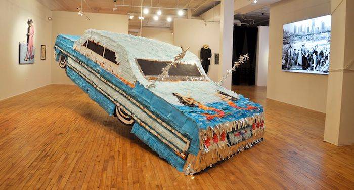 The show highlights the Pachuco subculture associated with flamboyant fashion and stylized language, known as Caló, used to show cultural pride. The exhibit features art and artifacts, including a full-size lowrider piñata and portraits of the National Chicano Dance Theater.