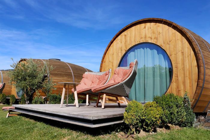 For a truly memorable stay, opt to stay in one of the 10 Wine Barrel suites on the 140-acre estate. Each suite has a round bed looking towards the vineyard, skylight, wifi, bathroom and outdoor seating area.