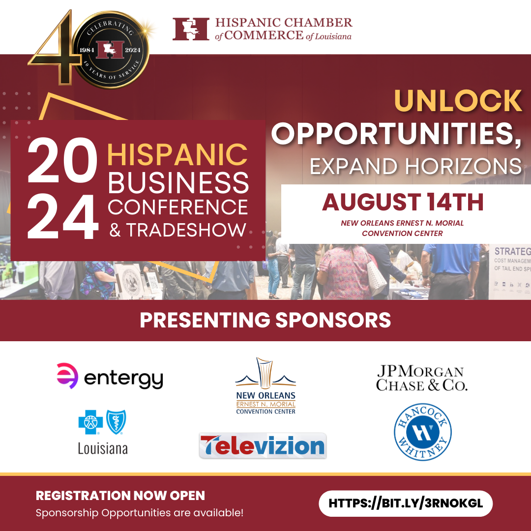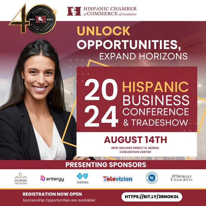 Join us Aug. 14 at the Ernest Morial Convention Center for the 9th Annual New Orleans Hispanic Business Conference & Tradeshow. This event is an ideal platform for Hispanic and non-Hispanic businesses to market goods and services, showcase brands, build partnerships and connect with investors.