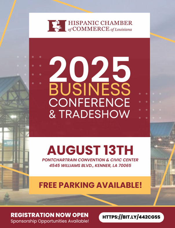 The Hispanic Chamber of Commerce of Louisiana is thrilled to invite you to its 2025 Business Conference & Tradeshow, scheduled for Aug. 13 at the Pontchartrain Convention & Civic Center in Kenner, Louisiana.