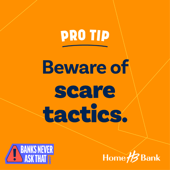 Often this communication is designed to trick you into providing confidential information (like account numbers, passwords or PINs) either online or over the phone to someone imitating a bank employee. Home Bank is participating in the American Bankers Association’s Banks Never Ask that campaign to keep customers aware.