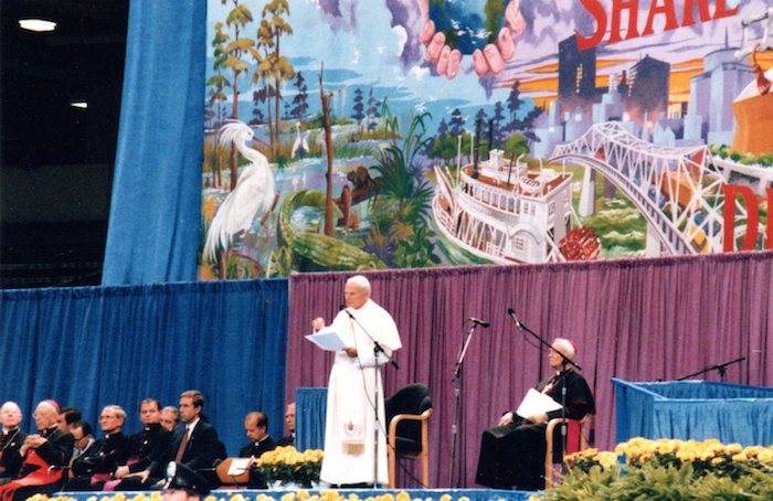 The pope’s whirlwind visit to the city in September 1987 included a visit with Catholic school educators, black Catholic leaders and local clergy. He also appeared at a huge youth rally at the Superdome and celebrated an outdoor Mass near University of New Orleans.